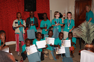 It was a very busy and energetic Bible quizzing season this year with over 200 children participating and 30 coaches challenging their kids to study nine chapters in the last half of Matthew. We had a second site about 30 minutes from Tenwek (Mosop school) where four different schools with nearly 200 students also participated. We concluded with a tournament last weekend to determine out top teams in the older primary school division (Grades 6 to 8) and our younger division (Grades 4 and 5). For the first time that Pam and I can remember, the Bible material we studied and memorized with the kids aligned perfectly with the Easter message this month. We don't have the final number of medals handed out for scripture memory but well over 100 kids earned gold medals, meaning they had quoted to their coaches, word perfect, either 60 verses (older kids) or 45 verses (younger kiddos) that we had selected as the most powerful for kids to remember. Another 50 or more kids earned silver and bronze medals for fewer verses memorized. Our theme "Loving My God....KABISA" came from Matthew 22: 37-39 the "Great Commandment" passage. "Kabisa" is a great Swahili word meaning "with everything" or "entirely". See pics below for scenes from last weekend's final competition and awards..